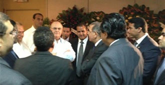 Presidente Medina e Hipólito Mejía se abrazan en velatorio del ex diputado Paniagua