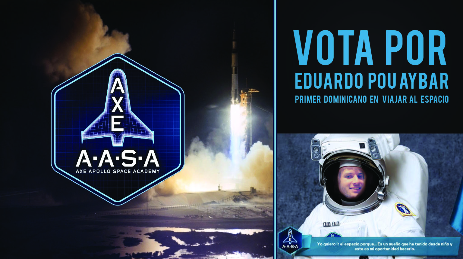 Se trata de una experiencia que viviría el joven aspirante, de ganar la competencia que promueve la compañía norteamericana AXE en su página www.axeapollo.com, en la que a través de votos electrónicos es posible promover que éste pueda alcanzar su sueño.