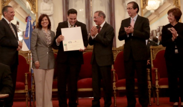 Medina entrega premio a ganador concurso Pupitre Dominicano