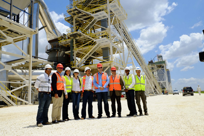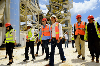 Durante su visita a la planta de Cemento Panam, el ministro de Industria y Comercio, José del Castillo Saviñón, recibibió explicaciones del presidente de la empresa, Manuel Estrella.