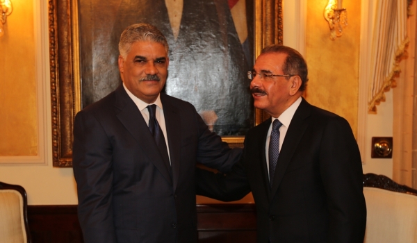 Vargas Maldonado fue recibido por el asistente del presidente Medina, Robert de la Cruz. En estos momentos Vargas Maldonado conversa con el mandatario, y se estima que entre los temas que traten esté el proyecto de Ley de los Partidos Políticos, y la Seguridad Ciudadana, entre otros.
