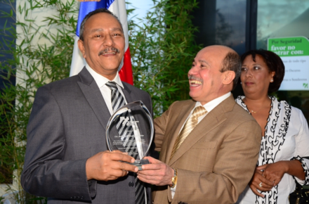 La placa de reconocimiento le fue entregada por el director general de la DGII, Juan Hernández, durante el acto de despedida que organizó la institución en honor a este funcionario ejemplar, quien se retira de la administración tributaria por quebrantos de salud.