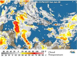 Además, advierte que la onda tropical localizada al este de Puerto Rico incrementará la nubosidad y las precipitaciones a última hora de hoy en la República Dominicana, esperándose una mayor actividad mañana.