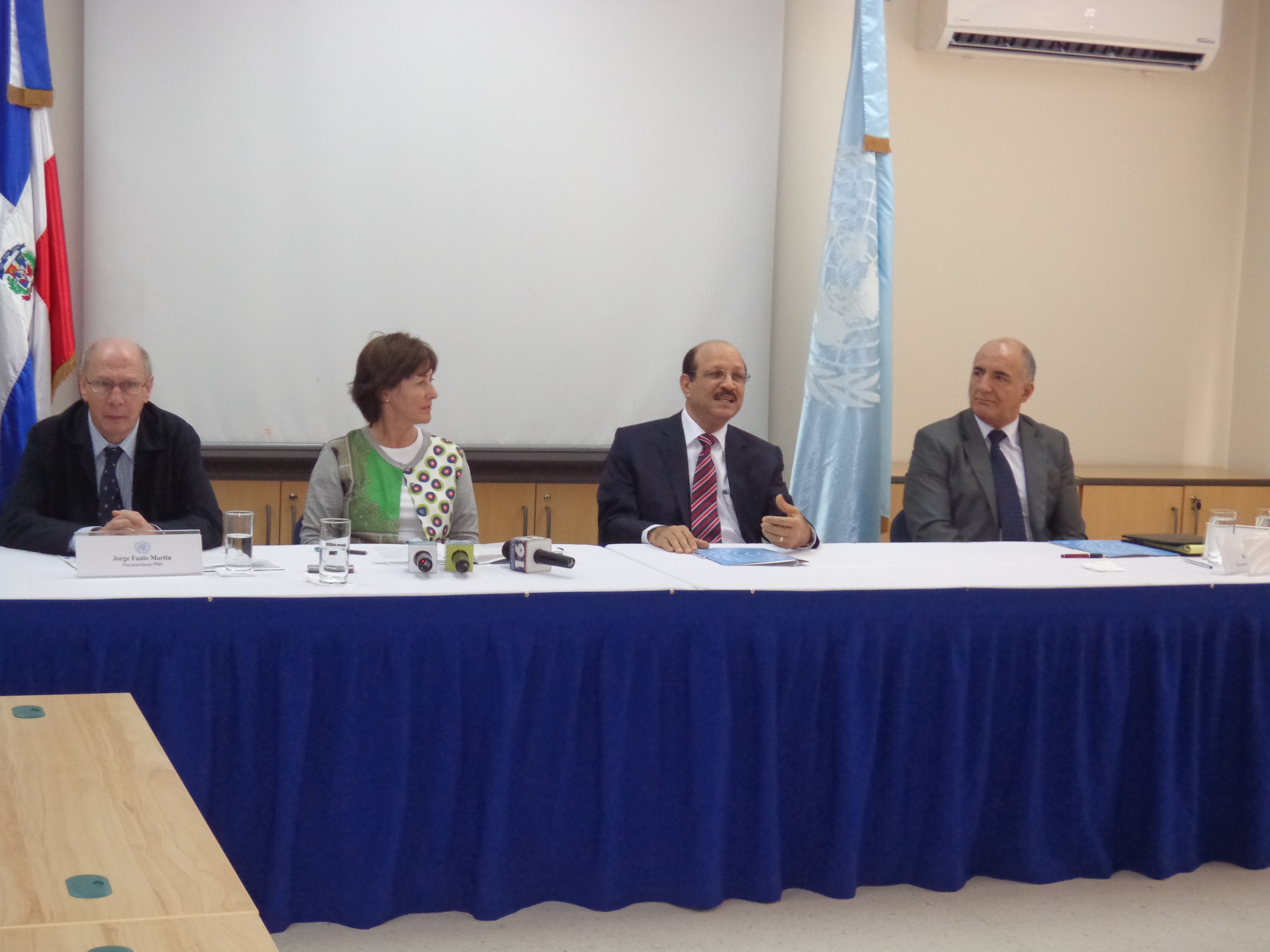 La firma se produjo en un acto realizado en la Casa de las Naciones Unidas, junto a los representantes de UNICEF, María Jesús Conde, y del Programa Mundial de Alimentos (PMA), Jorge Fanlo, así como el representante adjunto del PNUD, Roberto Gálvez.