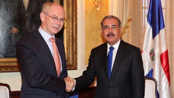 Van Rompuy, quien realizó una visita oficial al presidente Medina, llegó al Palacio Nacional a las 11:30 de la mañana, y luego de sostener una reunión bilateral con el Mandatario, explicó que como socio importante de Haití y la República Dominicana, la Unión Europea está dispuesta a participar en el fortalecimiento de las relaciones domínico-haitianas, tanto como se considere útil.