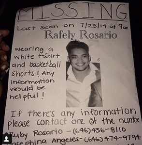 SANTO DOMINGO, RD.- El joven merenguero Rafely Rosario, hijo del veterano Rafa Rosario, se encuentra desaparecido desde el miércoles a las 9:00 de la mañana en la ciudad de Nueva York, informaron sus familiares.
