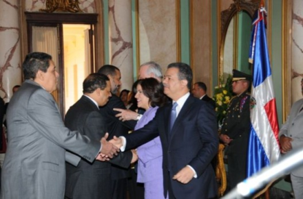 Santo Domingo, RD.- El presidente Leonel Fernández y el vicepresidente Rafael Albuquerque recibieron las tradicionales salutaciones de Año Nuevo, a cargo de representantes de diversos sectores de la vida nacional y de organismos internacionales.