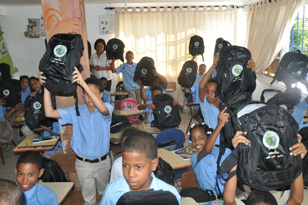 El acto formal de entrega de las mochilas y los útiles escolares fue realizado en la Escuela Tomás Taveras, del sector Bello Campo, de Santo Domingo Este, donde cada uno de sus 450 alumnos recibieron una mochila y los demás útiles escolares.