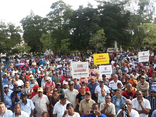 BANÍ.-Miles de personas participación aquí en una marcha-concentración para reclamar una equitativa distribución del agua de presas y ríos de la provincia Peravia, lo que ha provocado grandes pérdidas en los cultivos y la ganadería.