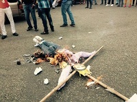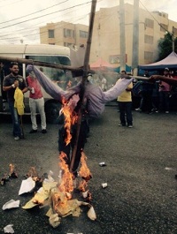 Crucifican e incendian en UASD un muñeco con una foto del senador Félix Bautista