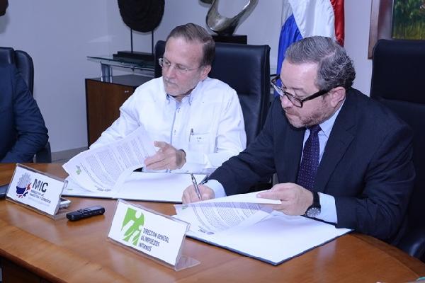 El acuerdo fue firmado este miércoles en la sede de la DGII por el viceministro de Industria y Comercio, Ignacio Méndez y el director general de Impuestos Internos, Guarocuya Félix.