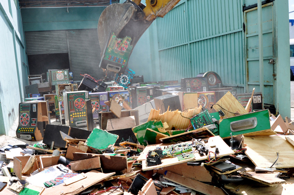 Ministerio de Hacienda destruye 223 máquinas “tragamonedas” ilegales