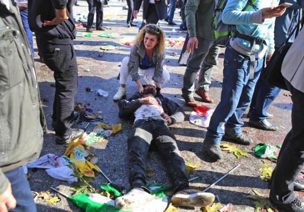 A las 10:04 locales (07:04 GMT) dos fuertes explosiones sacudieron los alrededores de la estación de tren central de Ankara. Justo allí debía celebrarse una manifestación opositora en favor de la paz, para denunciar la reanudación hace tres meses del conflicto entre las fuerzas turcas y los rebeldes del Partido de los Trabajadores del Kurdistán (PKK). A esa hora se estaban ya reuniendo las delegaciones de sindicatos y partidos políticos de izquierda, entre ellos la principal formación prokurda del país, el HDP, que afluyeron de toda Turquía para participar en la manifestación.
