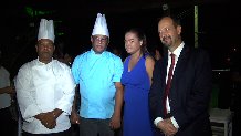 De derecha a izquierda el Embajador de Francia en el país, José Gómez, Francis Álvez propietaria de la Isla del Marisco, Crhistian Marguerite y Salvon Patrick, ambos chefs del restaurante.