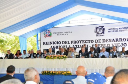 Sabana Yegua, Azua, RD.- El presidente Leonel Fernández reinició este los trabajos de construcción del Proyecto de Desarrollo Agrícola Azua II-Pueblo Viejo, obra que ejecuta el gobierno con inversión de tres mil 500 millones de pesos y que dinamizará la agropecuaria en esta provincia del Sur del país.