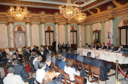 El encuentro con el primer mandatario se realizó en el Salón de Embajadores del Palacio Nacional y participaron además, los ministros de la Presidencia, César Pina Toribio; Administrativo de la Presidencia, Luis Manuel Bonetti; de Obras Públicas y Comunicaciones, Víctor Díaz Rúa, y de Interior y Policía, Ramón (Monchy) Fadul, así como la viceministra de Hacienda, María Feliza Gutiérrez y los directores de la Comisión Presidencial de Apoyo al Desarrollo Provincial, César Fernández y de la Oficina de Ingenieros Supervisores de Obras del Estado, Luis Sifres.