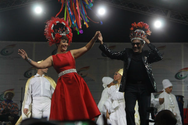 De acuerdo con el MINC, a la reina Torres (Pequita), le fue reservado el final de la velada celebrada en Plaza España, en la Ciudad Colonial. Ella encabezó un grupo de comparsas del carnaval de su ciudad natal Cotuí, que llenaron de ritmo y colorido el momento que le mereció el aplauso de pie de los presentes.