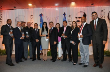 Durante la ceremonia de entrega de las estatuillas, acompañaron al primer mandatario Marco Herrera, director ejecutivo de Funglode, José Rafael Lantigua del Centro de Estudios de la Cultura de esa institución y Catherine Florentino, quien tiene a cargo la coordinación de dichos premios.