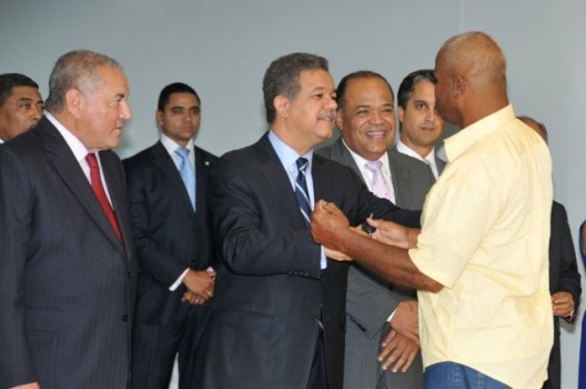 El presidente Fernández estuvo acompañado del administrador del Banco de Reservas, Vicente Bengoa; del presidente del Grupo Peravia Motors, Nelson Peña y de Víctor Aramboles, presidente de la empresa Inpiesea, SRL, entidad que sirvió de garante entre los choferes y la entidad bancaria.