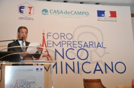 La ponencia del jefe de Estado tuvo lugar en el marco del Foro Empresarial franco-dominicano que se celebra hasta el próximo domingo 25 del presente mes en el complejo turístico Casa de Campo bajo los auspicios de la Cámara de Comercio Domínico Francesa y la embajada de Francia en la República Dominicana.