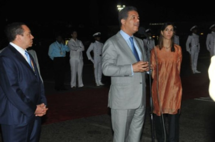 El mandatario habló luego de llegar al Aeropuerto Internacional Rafael Núñez, donde arribó a las 9:21 de la noche, una hora más tarde en República Dominicana, acompañado del ministro de la Presidencia, César Pina Toribio; el asesor en materia de Drogas, Marino Vinicio Castillo; el jefe del Cuerpo de Ayudantes Militares, general Héctor Belisario Medina Medina y su asistente personal, Danilo Pérez.