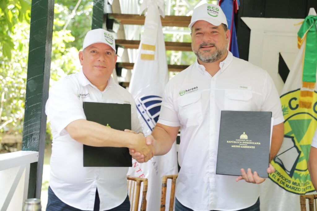 CRISTALDIGITAL.COM.DO, BONAO.- El presidente del Consejo de Administración de la Cooperativa Nacional de Servicios Múltiples de los Maestros (Coopnama), Santiago Portes, y el ministro de Medio Ambiente y Recursos Naturales, Paíno Henríquez, firmaron un convenio de cooperación y responsabilidad para fortalecer el voluntariado “Ecohéroes Ciudadanos”, bajo el lema “¡Por un país más verde, fuerte y solidario!”