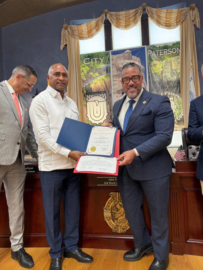 • Reconocimiento del alcalde de Paterson, Nueva Jersey, André Sayegh, junto a los concejales Alex Méndez y Luis Vélez, quienes valoraron su trayectoria política y su vínculo estrecho con la comunidad peraviana en el exterior.