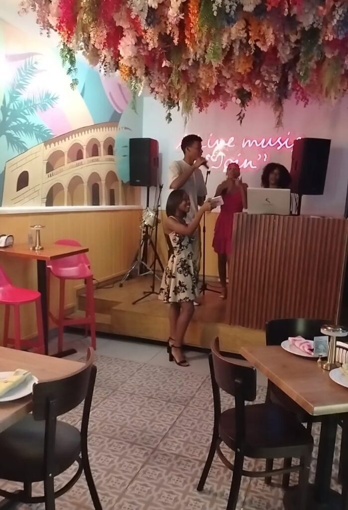 Acompañada de amigos (as), Lugo Cuello vivió una experiencia inolvidable en la que disfrutaron de la exquisita gastronomía del restaurante, así como de la música de diferentes géneros, y la participación en Karaoke.
