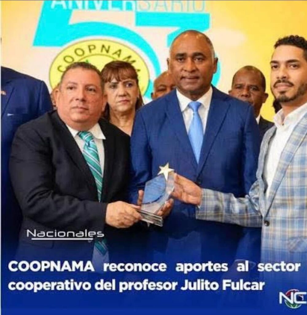 CRISTALDIGITAL.COM.DO, SANTO DOMINGO, RD.- El profesor Julito Fulcar dirigente de la Cooperativa Nacional de Servicios Múltiples de los Maestros (Coopnama), desde el año 1989, fue reconocido por esta entidad empresarial por sus aportes realizados al sector cooperativo.