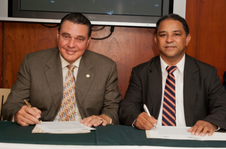 El convenio suscrito por el rector de la UCE, José Hazím Frapier, y el presidente del CDP, Aurelio Henríquez, establece la reapertura de la carrera de comunicación social del centro académico. La ceremonia de firma se llevó a cabo en la sede nacional del gremio periodístico, en el Distrito Nacional.