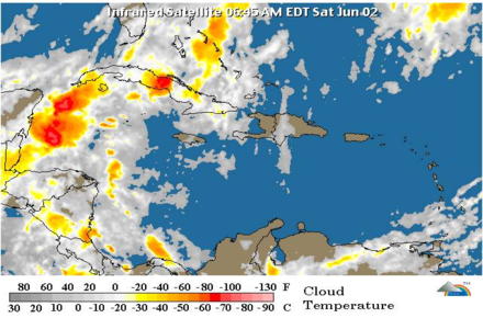 La Onamet asegura que esta tarde debido a la humedad existente y los efectos orográficos, así como también a la incidencia de radiación solar, se producirán aguaceros con tormentas eléctricas, con su mayor incidencia sobre Santiago, Santiago Rodríguez, Valverde, Villa Vásquez, Elías Piña, San Juan de la Maguana y Bahoruco.