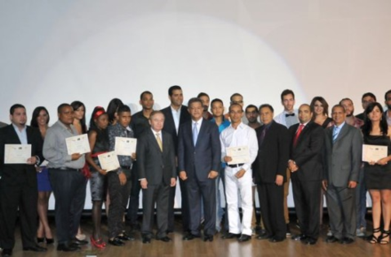 Recibieron los certificados de manos del presidente Fernández los estudiantes Elena Pérez, Ayed Fadel, Jennyver Caraballo, Garry Lesperance, Keyla Polanco y Lourna Felisca, entre otros.