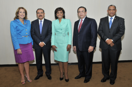 La mesa de honor estuvo integrada por el presidente electo de la República, Danilo Medina; el gobernador del Banco Central, Héctor Valdez Albizu; la vicegobernadora, Clarissa de la Rocha de Torres; el gerente, Ervin Novas y Cándida Montilla de Medina.
