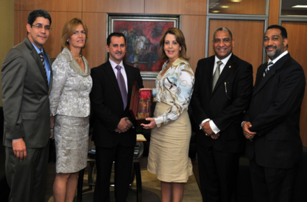 Durante el acto de entrega, la vicegobernadora estuvo acompañada por los subgerentes Ervin Novas y Frank Montaño, así como Milena Alba Frappier y Miguel Ángel García, éstos últimos en representación del Departamento de Emisión y Custodia, responsables de la Página Web ganadora, que puede ser vista en la dirección electrónica http://www.bancentral.gov.do/billetes_monedas/index.html.