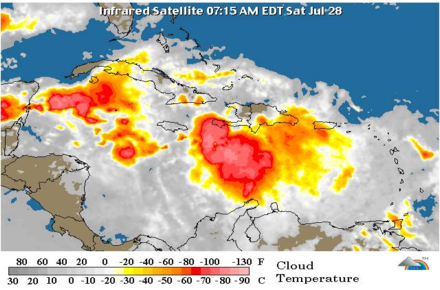 Agrega que para el próximo martes, una activa onda tropical llegará al país y dejará cuantiosas precipitaciones en prácticamente todo el territorio nacional.