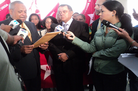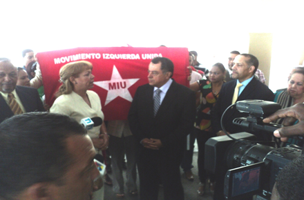Una delegación del MIU encabezada por los dirigentes Eladio Rodríguez Solís, Octavio Rivera, Martha Pérez, Manuel Celestino y Francisco Alberto Caamaño hijo, entregó este jueves un documento como expresión de apoyo y solidaridad a la Embajada de Ecuador, en Santo Domingo, ubicada en la Avenida Abraham Lincoln 1007 del Ensanche Piantini.