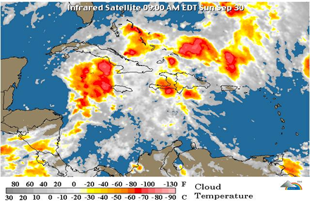 Indica que para mañana lunes continuarán los aguaceros, pero serán ampliamente aislados y de poca intensidad, prevaleciendo en las condiciones del tiempo los efectos locales.