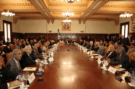 El presidente Medina y su equipo económico se reunieron con el Consejo Económico y Social en el salón de Consejo de Gobierno en el Palacio Nacional.