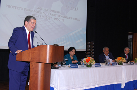 Santo Domingo, RD.- El Instituto Dominicano de las Telecomunicaciones (Indotel) y el Ministerio de Educación Superior, Ciencia y Tecnología (MESCyT), iniciaron hoy el proyecto “Formación Superior Tecnológica Virtual” que beneficiará con becas internacionales a 100 jóvenes ingenieros e ingenieras sobresalientes, y con alto potencial para la especialización y uso de las Tecnologías de la Información y Comunicación (TIC), procedentes de todo el país.