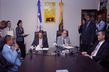 Por la JCE firmó su presidente, doctor Roberto Rosario Márquez, en tanto que el doctor José Ramón Fadul, Ministro de Interior y Policía, lo hizo en representación de esa entidad.