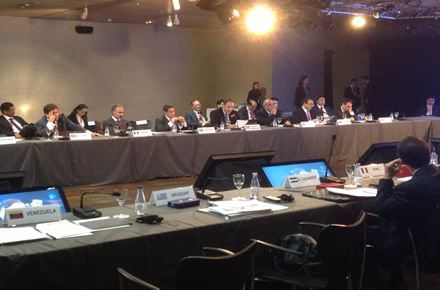 Los Ministros, el Gobierno y el Ministerio de Industria, Energía y Turismo de España y la Secretaría General Iberoamericana y altas autoridades de los Estados Iberoamericanos agotan una reunión en Madrid, España con motivo de la I Reunión de Ministros de Industria y responsables de la pequeña y mediana empresa, en el marco de la XXII Cumbre Iberoamericana de Jefes de Estado y de Gobierno que tendrá lugar los días 16 y 17 de noviembre de 2012 en España, en la ciudad de Cádiz. Además de Del Castillo Saviñón lo acompañan el viceministro de Pymes, Ignacio Méndez y la asesora económica del MIC, Ana Carolina Franco.
