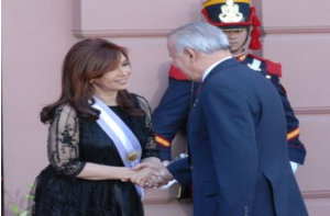 «El presidente Leonel Fernández le envía unas calurosas felicitaciones a usted y a su gobierno, por el gran respaldo popular que le ha dado el pueblo argentino a su ejecutoria gubernamental», expresó el vicepresidente al hablar con la presidenta Cristina Fernández en la Casa Rosa, durante los saludos protocolares luego de la juramentación.