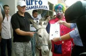 Jóvenes indignados quisieron inscribir a un burro para la Asamblea en Ecuador