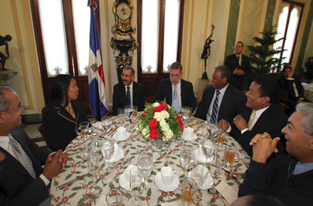 SANTO DOMINGO, RD.- El presidente Danilo Medina compartió un desayuno navideño con periodistas, camarógrafos y fotógrafos que cubren la fuente del Palacio Nacional.
