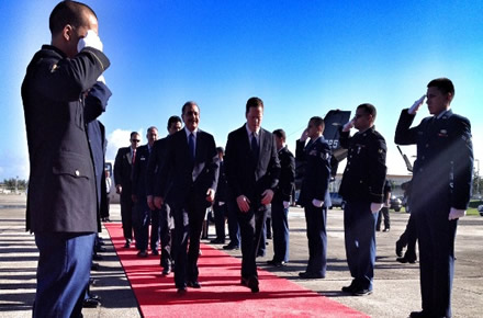 El Mandatario dominicano habló tras recibir los honores correspondientes a su investidura, al arribar a la isla caribeña por el Aeropuerto Militar Fernando Luis Ribas Dominicci, cerca de las 10:00 de la mañana, para asistir a los actos de toma de posesión del nuevo gobernador Alejandro García Padilla que tendrán lugar en el Capitolio puertorriqueño.