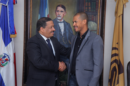 SANTO DOMINGO, RD.- El presidente de la Junta Central Electoral (JCE), Roberto Rosario Márquez, recibió la visita del campeón Olímpico Félix Sánchez, en el transcurso de una visita de cortesía que el destacado atleta realizó a la sede principal del organismo electoral.