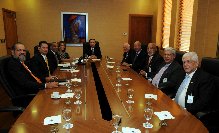 SANTO DOMINGO, RD.- El gobernador del Banco Central, Héctor Valdez Albizu, se reunió con altos ejecutivos de la Liga de Asociaciones de Ahorros y Préstamos, para pasar revista a la situación de ese sector del sistema financiero nacional.
